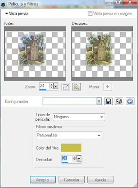 | 7. Efectos/ Efectos fotográficos/ Película y filtros. Color del filtro #c6c141 |