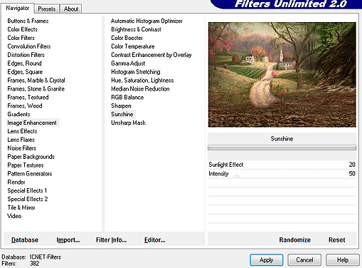 | 12. Efectos/ Plugins/ Filters Unlimited 2.0/ Image Enhancement/ Sunshine |