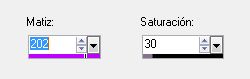 29. Abrir el tube XmasRedPressieOpen Redimensionar 50% Copiar/ Pegar como nueva capa. Colocar. Ajustar/ Matiz y Saturación/ Colorear. |
