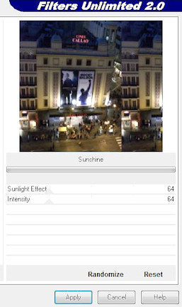 8. Efectos/ Plugins/ Filters Unlimited 2.0/ Image Enhancement/ Sunshine |