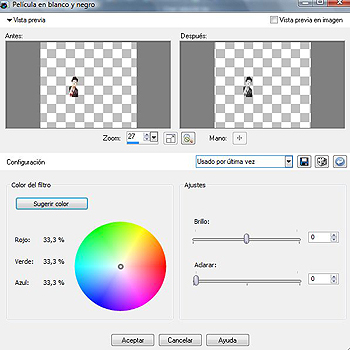 24. Efectos/ Efectos fotográficos/ Película en blanco y negro. Opacidad 75% |