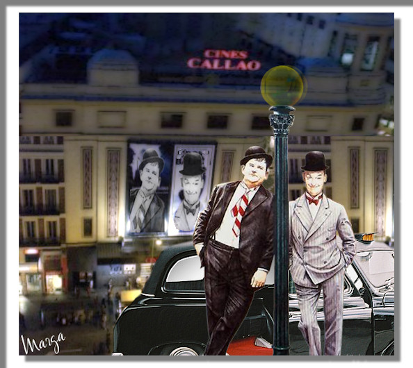 11. Abrir tube FBR_Laurel & Hardy. Copiar/ Pegar como nueva capa. Duplicar. |