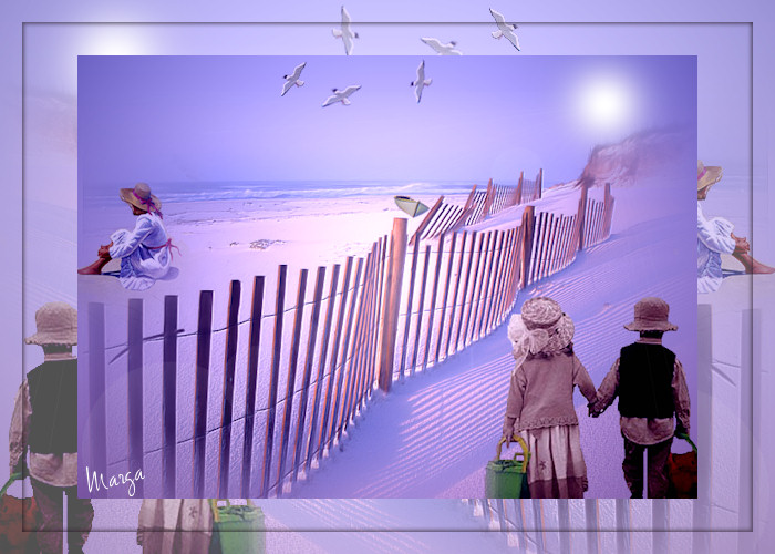 16. Abrir tube descanso. Copiar/ Pegar como nueva capa. Redimensionar al 85%. Colocar sobre la arena. |