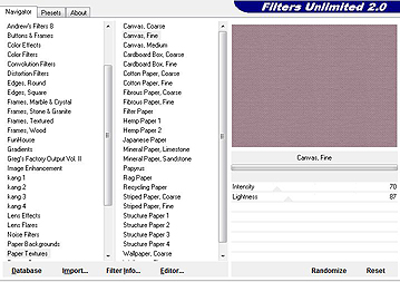 4. Efectos/ Plugins/ Filters Unlimited 2.0/ Paper Textures/ Canvas, fine 70/ 87 |