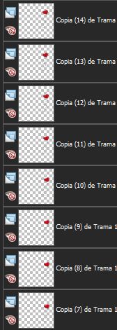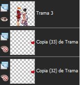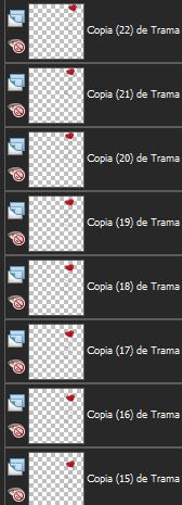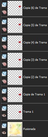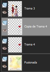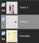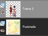 | 44. En la segunda animación cerradas todas las capas menos la capa "Fusionada", la capa " Copia de Trama 1 " y "Trama 3" |